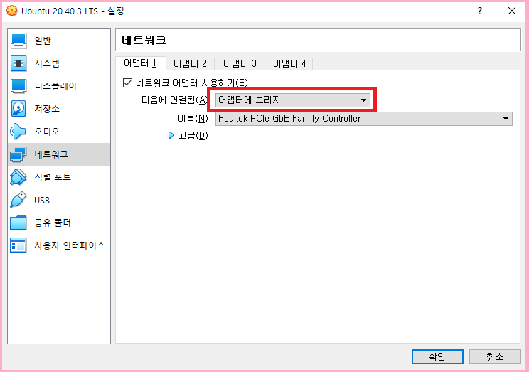 어댑터에 브리지 선택해주세요.