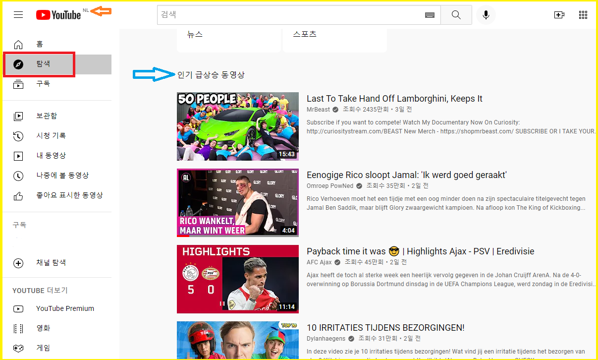 각 나라별 인기동영상을 볼 수 있는 방법이 있더라고요.ㅋ