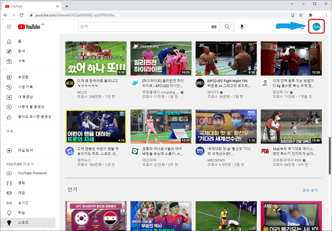 왜냐하면 첫화면은 유튜브 추천 알고리즘에 의한 영상이기 때문인데요.