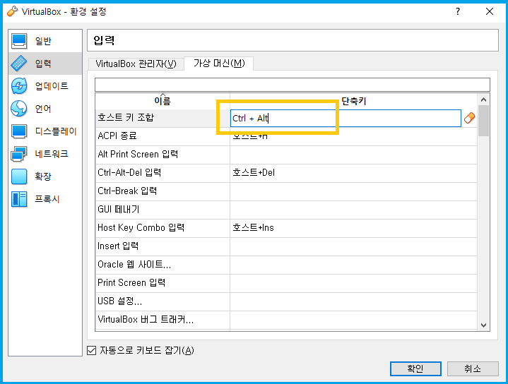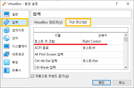 호스트키는 VirtualBox 설치하면