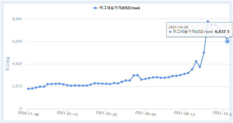 이번 마그네슘 대란으로 또 급상승이 예상되네요.
