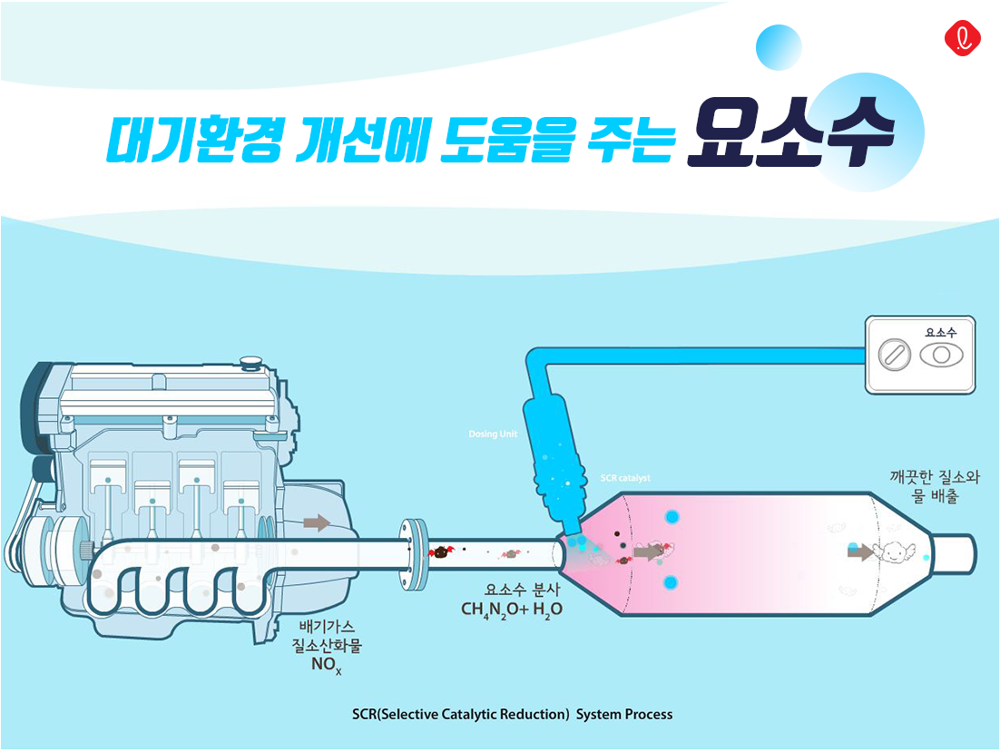 요소수를 분사해서 질소산화물(NOx)을 질소와 물로 환원시켜 정화시켜줍니다.