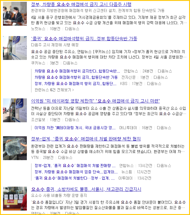 어제부터 요소수 구하러 다닌 분도 있다고 하네요.