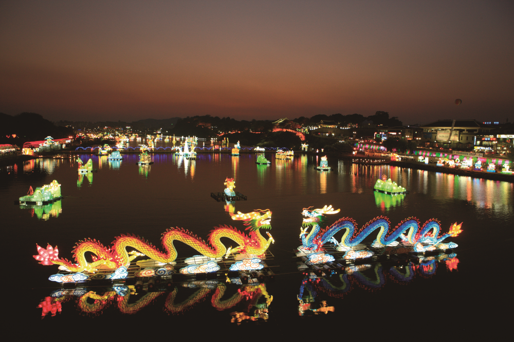다양한 모양의 수상등이 전시되며 수상 불꽃놀이와 워터라이팅쇼 등이