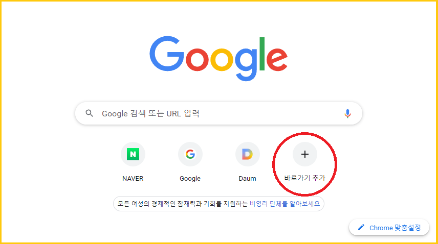 크롬 실행하시면 첫페이지에 「바로가기 추가」라는 메뉴가 보일 거예요.