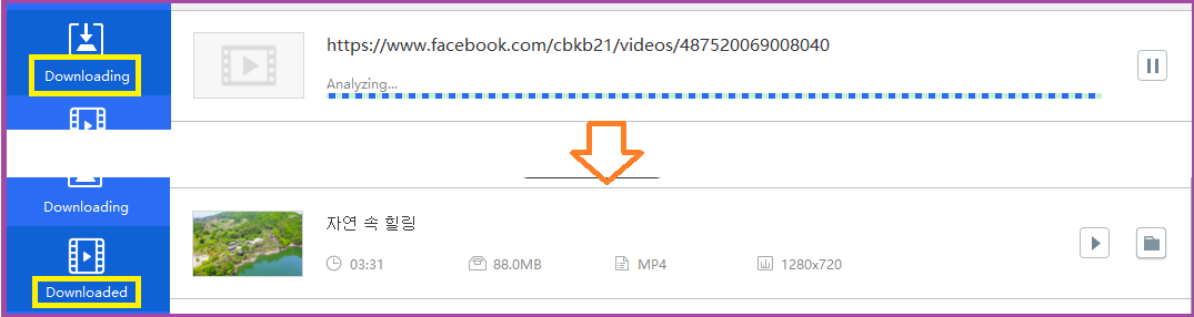 바로 「Downloading」 메뉴에서 URL을 분석하고 다운로드가 진행되네요.
