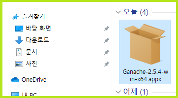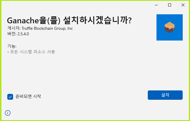 다운로드된 Ganache-2.5.4-win-x64.appx 더블클릭으로 설치 진행합니다.
