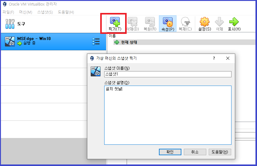 그치만 처음 설치하고 스냅샷을 찍어 놓으시면