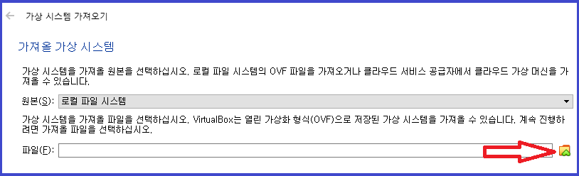 오른쪽 폴더 아이콘을 클릭해서 《MSEdge - Win10.ova》 파일을 선택하세요.
