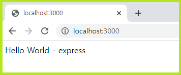 | ♠ node.js 샘플과 동일한 기능을 express로 만든 소스입니다. 파일명 : hit_1.js const express = require('express') const app = express() const port = 3000 app.get('/', (req, res) => { res.send('Hello World - express') }) app.listen(port, () => { console.log(`Example app listening at http://localhost:${port}`) }) C:\dev\hitapp>dir C 드라이브의 볼륨에는 이름이 없습니다. 볼륨 일련 번호: A8FA-0147 C:\dev\hitapp 디렉터리 2021-12-22 오후 11:27 <DIR> . 2021-12-22 오후 11:27 <DIR> .. 2021-12-22 오후 11:26 249 hit_1.js 2021-12-22 오후 11:21 <DIR> node_modules 2021-12-22 오후 11:33 31,946 package-lock.json 2021-12-22 오후 11:33 252 package.json 3개 파일 32,447 바이트 3개 디렉터리 72,815,972,352 바이트 남음 ♠ js 실행하기 C:\dev\hitapp>node hit_1.js Example app listening at http://localhost:3000 ![]() |