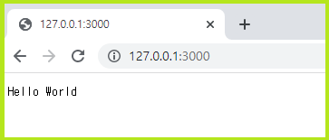 | ♠ Hello World를 보여주는 간단한 웹서버 파일명 : node_one.js const http = require('http'); const hostname = '127.0.0.1'; const port = 3000; const server = http.createServer((req, res) => { res.statusCode = 200; res.setHeader('Content-Type', 'text/plain'); res.end('Hello World'); }); server.listen(port, hostname, () => { console.log(`Server running at http://${hostname}:${port}/`); }); ♠ js 실행하기 C:\dev\nodejs>node node_one.js Server running at http://127.0.0.1:3000/ 브라우저에서 http://127.0.0.1:3000를 치면 Hello World가 나타난다. ![]() |