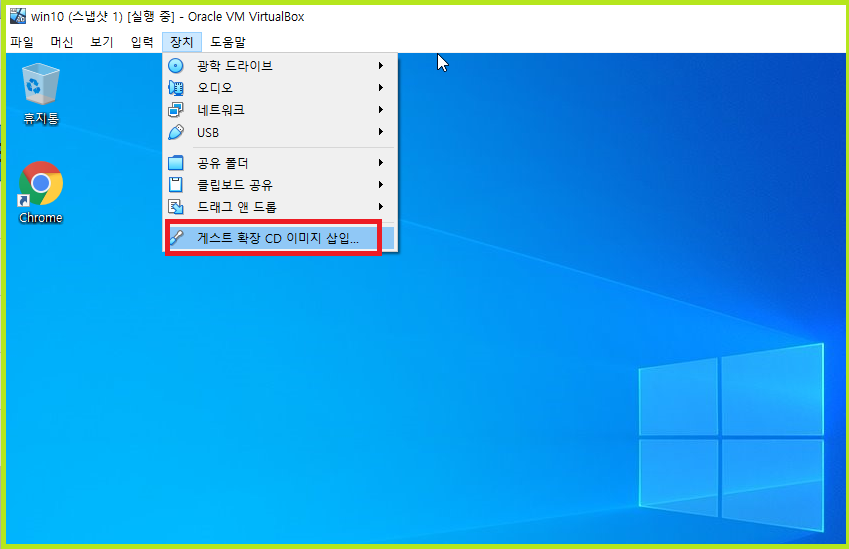 장치 메뉴에서 게스트 확장 CD 이미지 삽입.. 클릭하세요.
