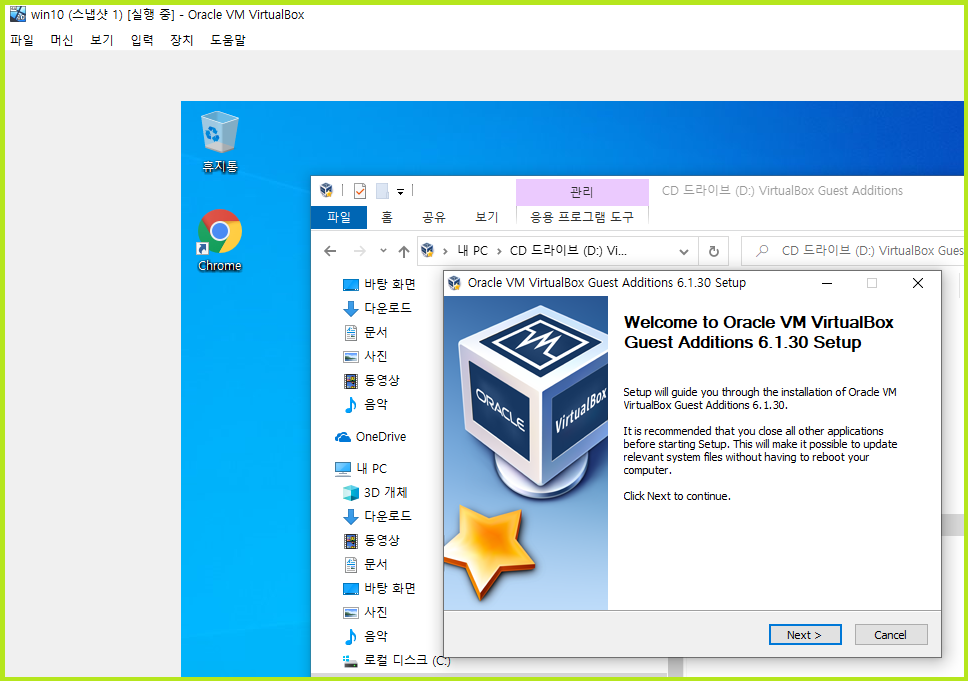 VirtualBox 게스트 확장을 설치하면