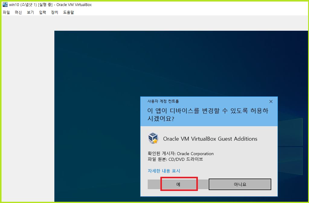 ● VirtualBox Guest Additions 실행하세요.