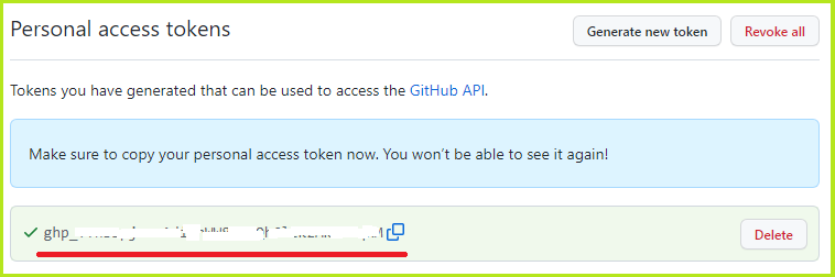 생성된 토큰을 복사해 두세요.