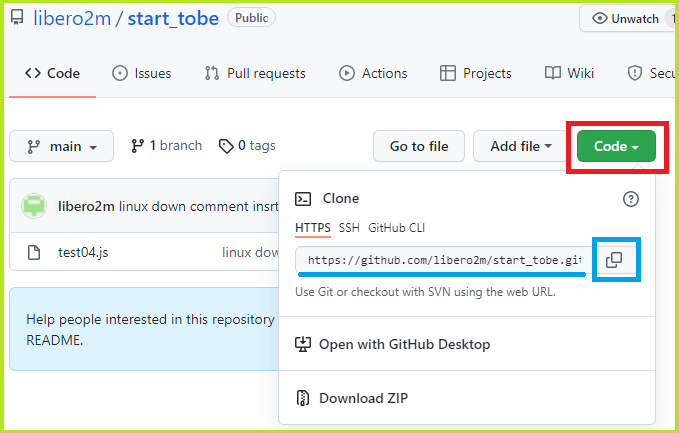 해당 repository 메인 화면에 녹색 Code를 클릭하시면