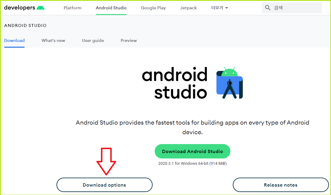 ● 안드로이드 스튜디오 개발자 사이트 접속