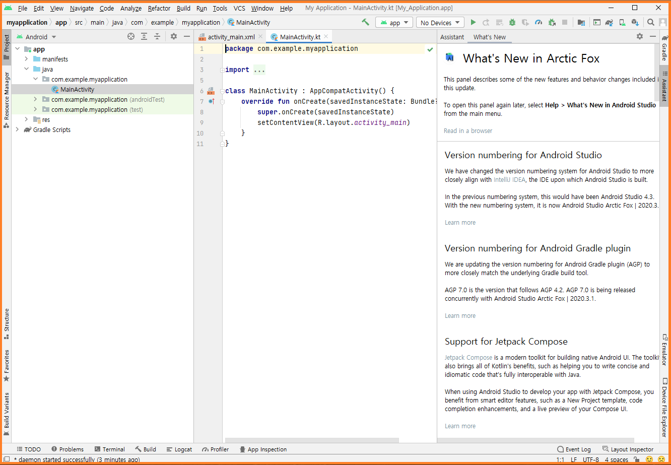 상단에 My Application 타이틀도 보이고 중간에 Hellow World!도 잘 표시되네요.