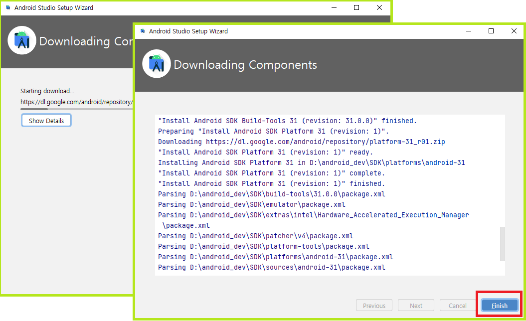 다운로드 파일 android-studio-2020.3.1.25-windows.zip 압축을 푸니