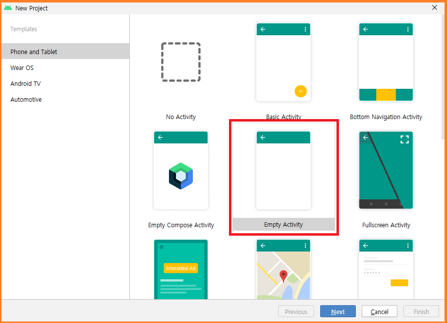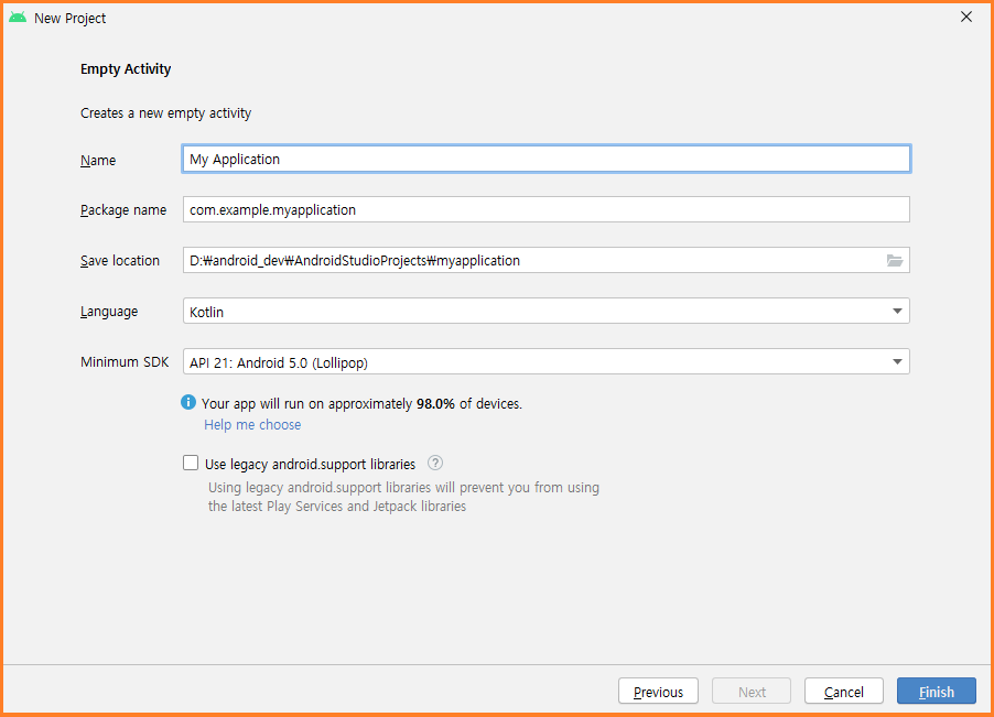 적절한 이름으로 바꿔주시고 Language은 안드로이드 앱 개발을 위한