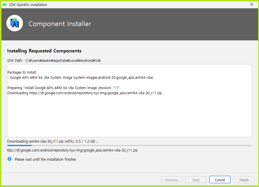arm65 Android 11 버전으로 Download 클릭합니다.