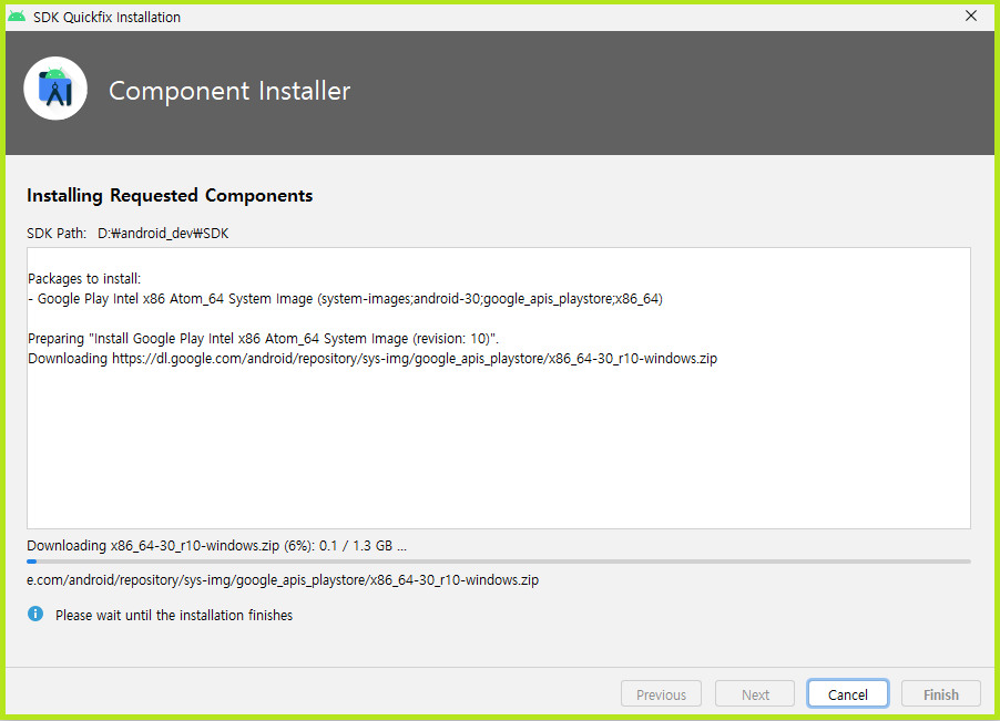 Download와 설치 진행중...