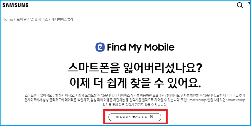 아래 내 디바이스 찾기로 이동 클릭하세요.