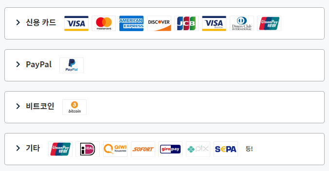 결제 수단도 다양해서 편한 방법을 선택하시면 될 거 같아요.