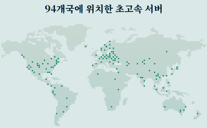 무료 VPN과는 비교할 수 없는 속도와 94개 국가에 VPN서버가 있는 스케일,