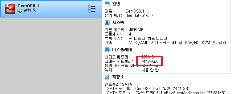 그래픽 컨트롤러가 VMSVGA로 지정되어 있을 거예요.