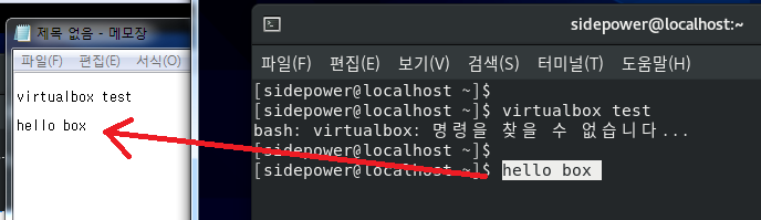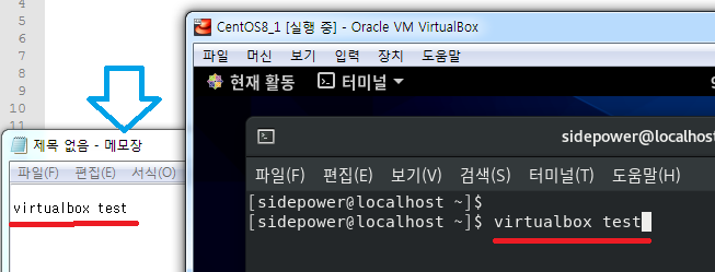 호스트의 메모장에서 virtualbox test를 입력해서 Ctrl + C (복사) 합니다.