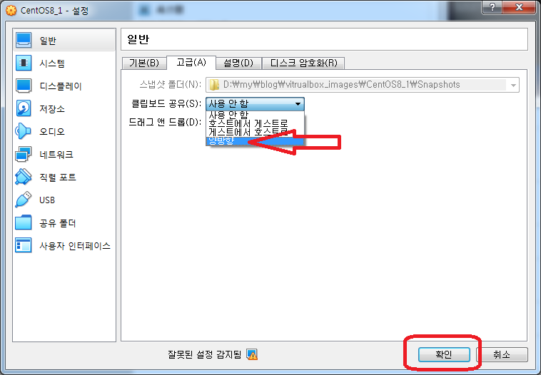 첫 번째는 VirtualBox 메인 관리자 화면에서 설정하는 법