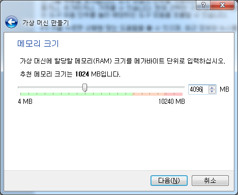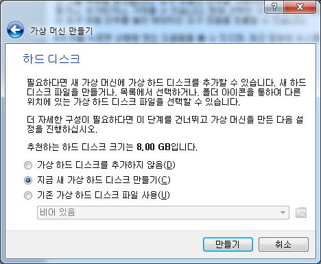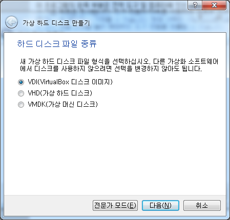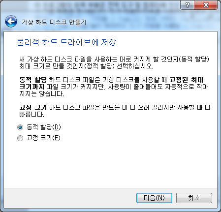 6) 하드 디스크 동적 할당 선택