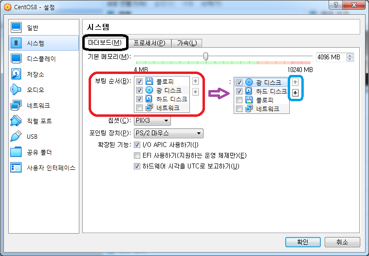9) 부팅 디스크 순서 정하기