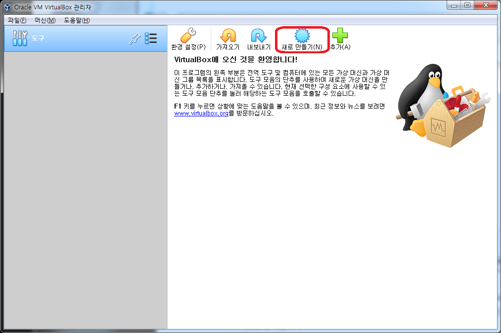드뎌 VirtualBox에 리눅스를 설치할 차례입니다.